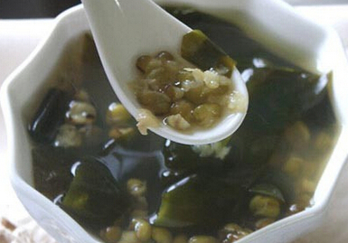 海带绿豆汤:海带是化痰、消炎、平喘、排毒、通便的理想食物。海带中的碘还可以促使卵巢滤泡黄体化,从而降低体内雌激素水平,使内分泌失调得到调整。绿豆和海带的结合,让这道绿豆海带汤不但能够缓解肝火旺盛,缓解头痛目眩、口苦口干等症状,还可辅助治疗早期高血压。